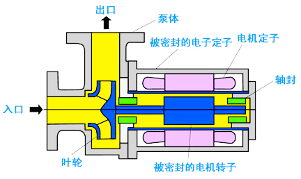 結(jié)構(gòu)上沒有動(dòng)密封,只有在泵的外殼處有靜密封,因此可以做到完全無泄漏,特別適合輸送易燃、易爆、貴重液體和有毒、腐蝕性及放射性液體。
